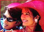 The third angle of the triangle is former leading lady Sudha Rani, who emigrated to the US after marrying a doctor, a la Madhuri Dixit, but who is now attempting a comeback. Sudha, who won the hearts of her viewers in her debut in matinee idol Rajkumar's eldest son Shivaraj Kumar's own first film, Anand, over a dozen years ago, now looks distinctly faded and weary.
