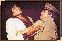 Although it must be admitted that Bachchan's was the weaker character in the script, nothing can take away from Dilip Kumar's towering act as the idealistic cop Ashwini Kumar who has the courage to point a gun at his own son to defend the law he worships.