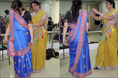 ~ The rest of the pallav can hang in loose folds behind you from your left hip to the back of your right shoulder.