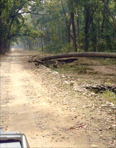 At Ramnagar we hired a Gypsy for our two-day stay. Dhangarhi Gate, the entrance to the main camp of Dhikala, is 18 km from Ramnagar. The drive was breathtaking -- tall trees, fresh air, clean, smooth roads and no sign of pollution. We were all quite fascinated with the beautiful weather and landscape.
