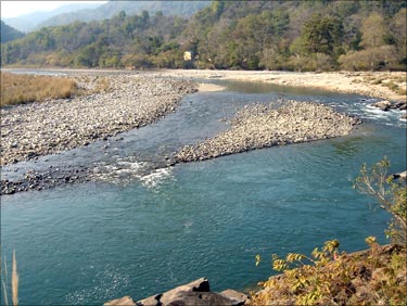 We reached Gairal at 3.45 pm and were more than happy with our choice. It was inside the forest with the river a short walk away. The cottages were protected by electric wiring -- like in Jurassic Park! It had a canteen where we could have our meals. After dumping our bags in the room, we left for the jungle safari.