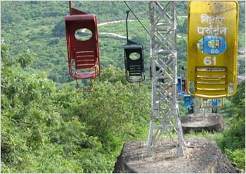 The pagoda at a height of 400 metres on the hill is surrounded by greenery. The ropeway took us to Shanti Stupa. Built with white marble, it is a beautiful monument which houses a statue of Lord Buddha.
