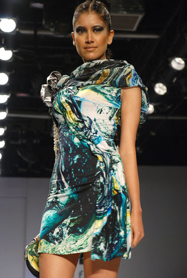 nteresting print (do you get the earth connection?), even more interesting neckline. We give this number a thumbs up.