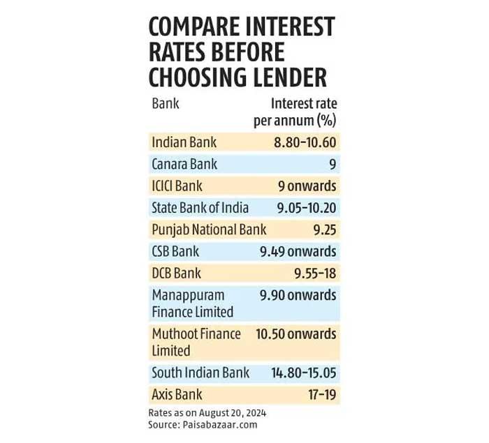 Compare interest rates and loan tenures of various players. Also, find out the lender's policy related to insurance of the mortgaged gold and whether it is stored securely.