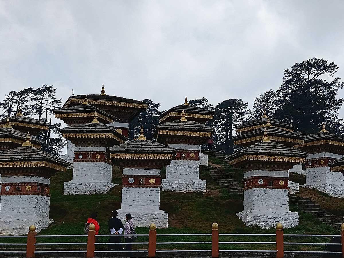 This mountain pass is on the on the road from Thimphu to Paro, and marked by the 108 memorial stupas built by the eldest Queen Mother Ashi Dorji Wangmo Wangchuk, as a memorial to honour Bhutanese soldiers who were killed in the December 2003 battle against Assamese insurgents from India, which then king Jigme Singye Wangchuck won.