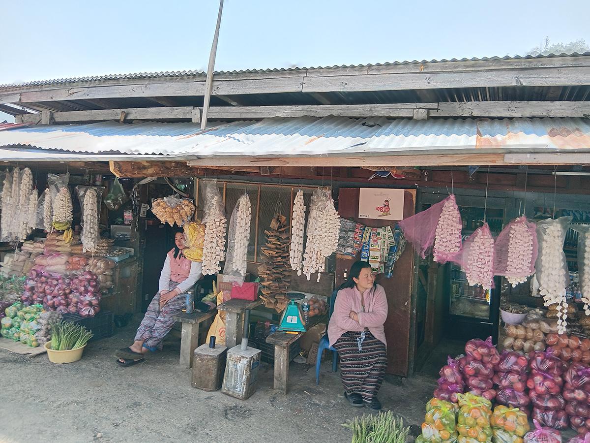 The main street in Paro has a row of shops, and it is surprising to see a marketplace so quiet -- nobody pushes souvenirs on to tourists or haggles loudly.