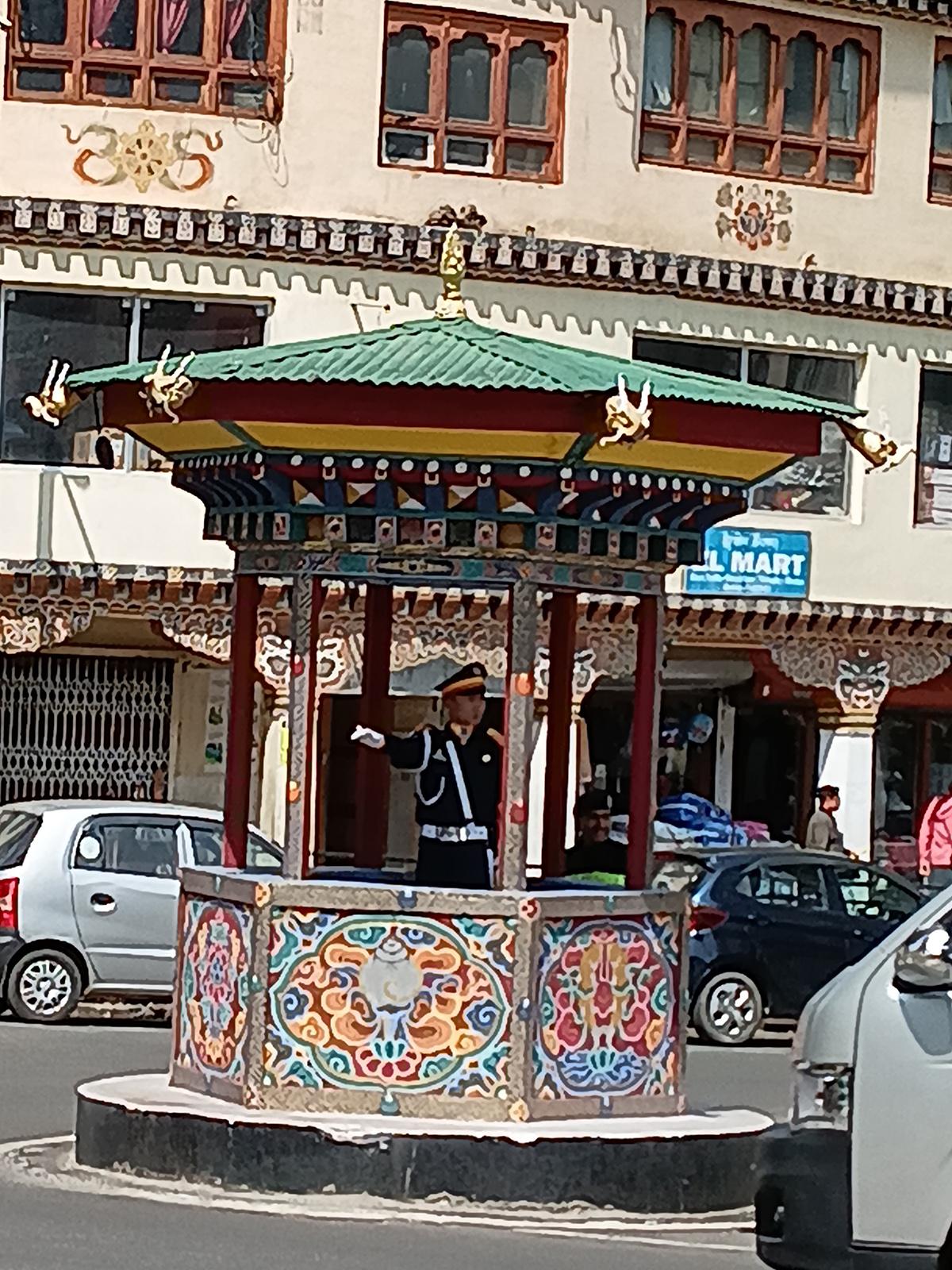 Thimphu has the only traffic policeman in the country, who serves an ornamental purpose, directing perfectly disciplined traffic, from his cute little island.