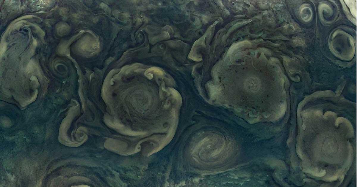 The image of the Northern Cyclones on Jupiter was taken from JunoCam, which is the public outreach camera aboard NASA's Juno spacecraft.