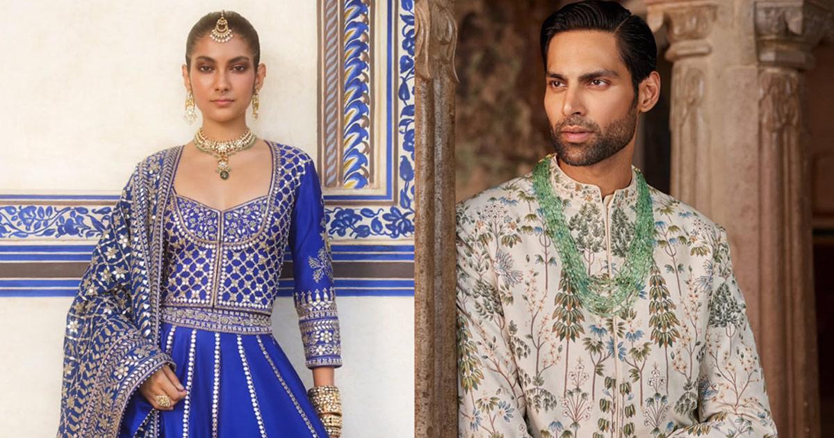 "Grooms are complementing these looks with stylish ivory sherwanis and bandhgalas, or tailored suits in classic black or navy, along with modern embroidery," he says. "Floral motifs and patchwork details are in the spotlight."