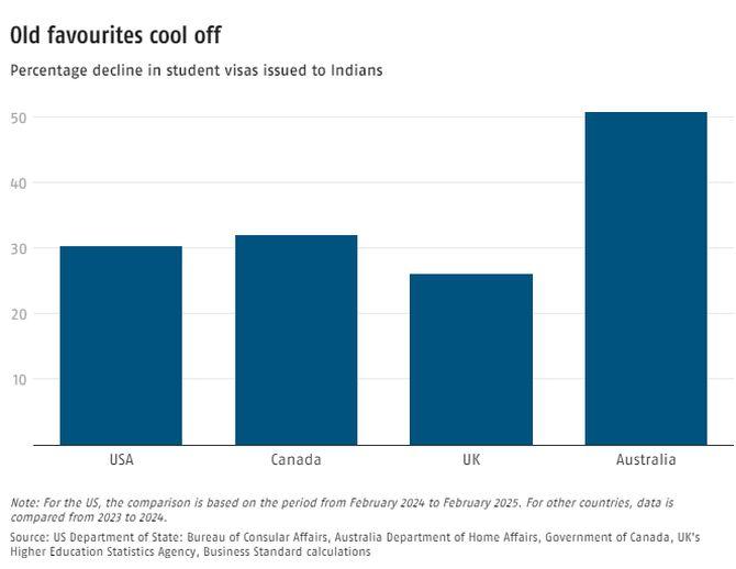 Canada saw a 32 per cent drop from 2023 to 2024. The UK reported a 26 per cent decline, and Australia posted the sharpest fall at 50.8 per cent.