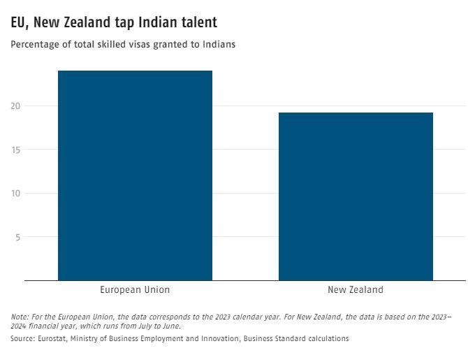 New Zealand gave Indians 19.2 per cent of its skilled visas (38,457 out of 200,577), again the highest share for any nationality.