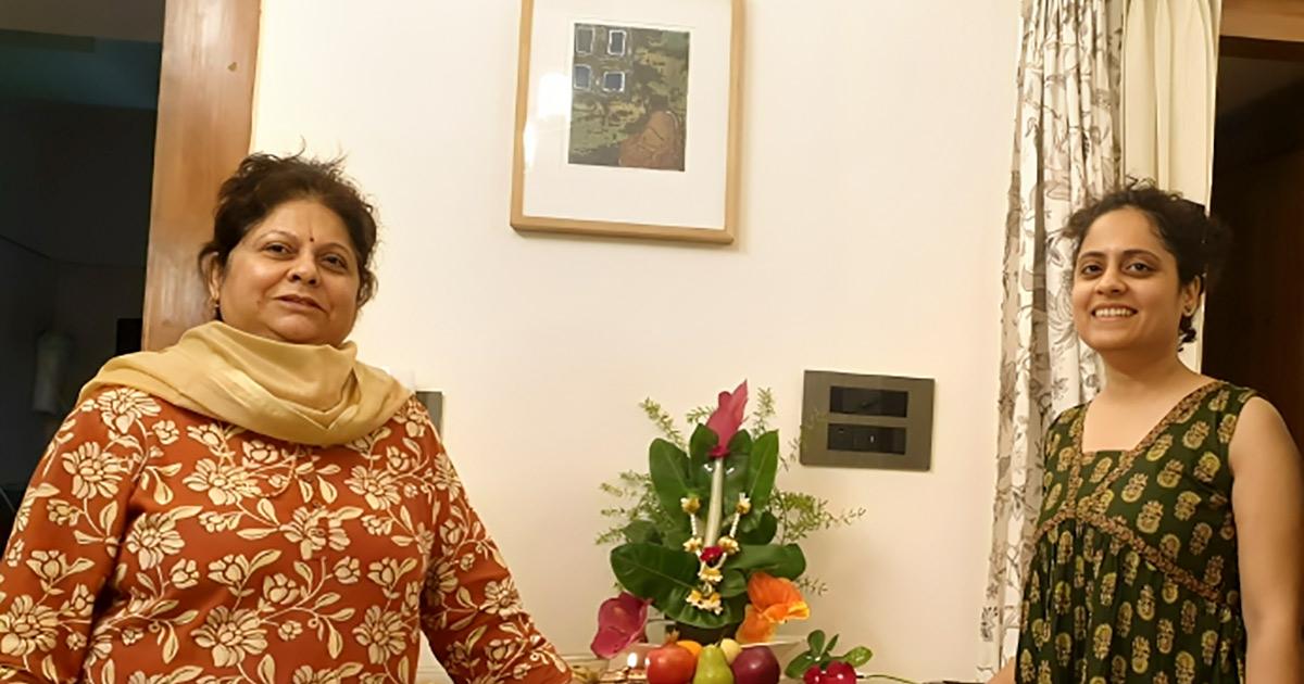 "Our eco-friendly, sustainable Ganesha is made using plants and leaves from our garden," Kranti says.