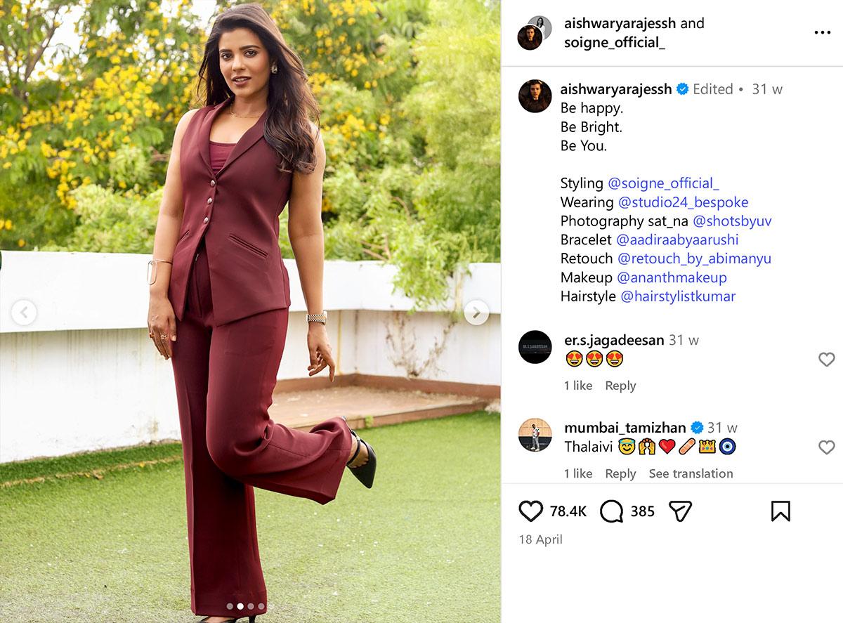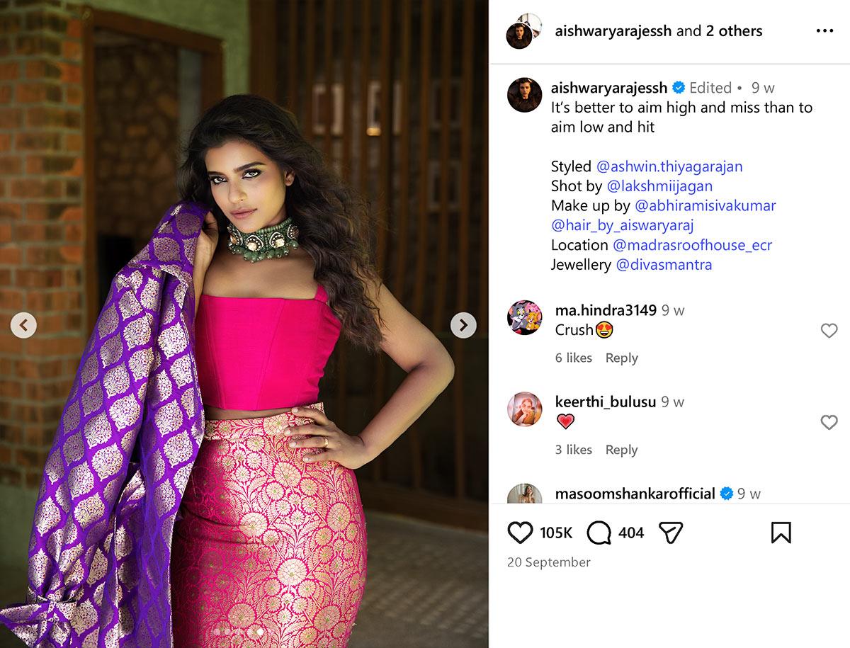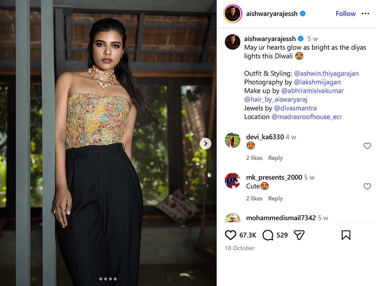 Aishwarya Rajesh’s style is as fluid as water. It is constantly shifting, effortlessly adapting and always in tune with the moment.