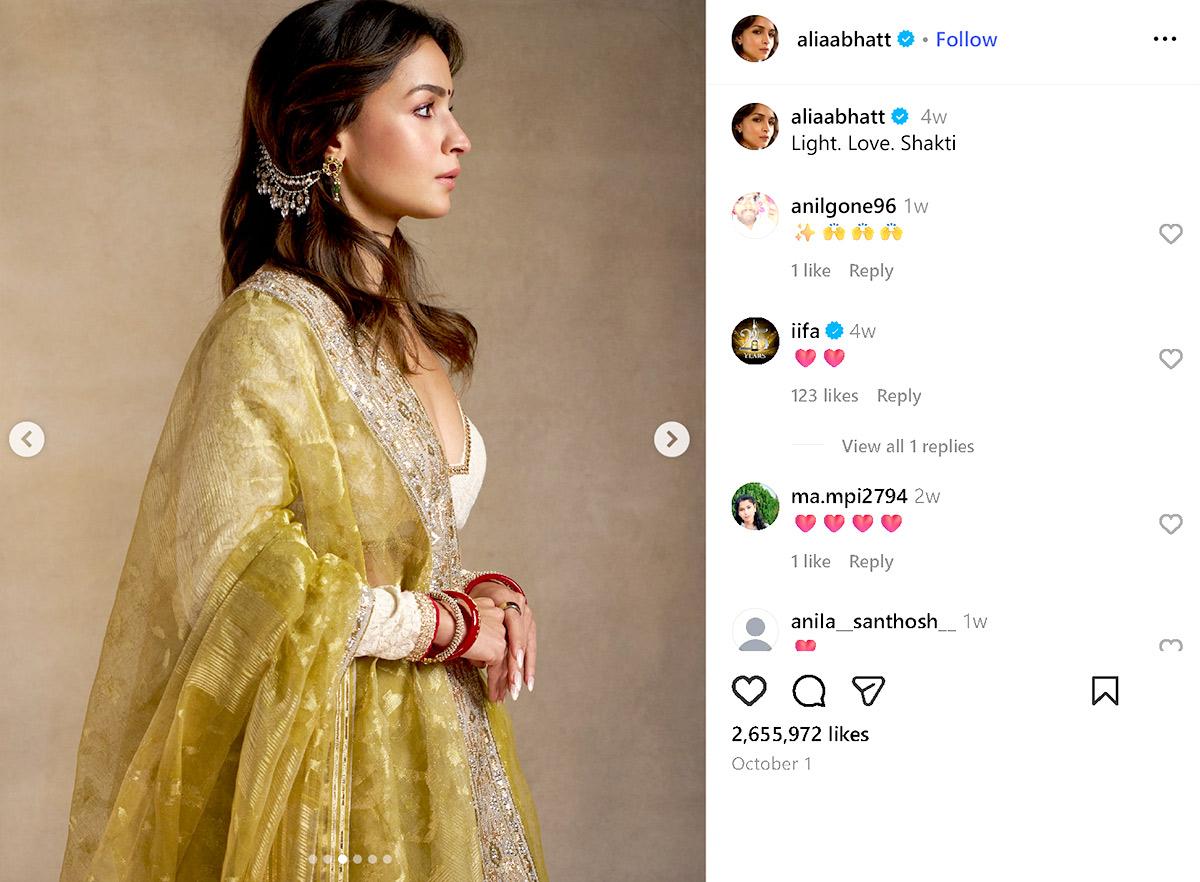 IMAGE: Alia Bhatt styles statement kanautis with open hair and just a bindi for that clean, classic vibe. The best part? The pieces were borrowed from Sunita Kapoor’s jewellery stash. Photograph: Kind courtesy Alia Bhatt/Instagram