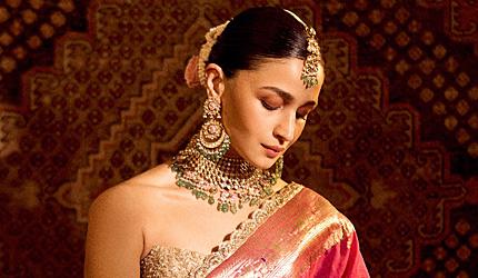 Old meets bold. Alia Bhatt paired a century-old silk sari with a gold strapless blouse, giving classic glam a modish upgrade.