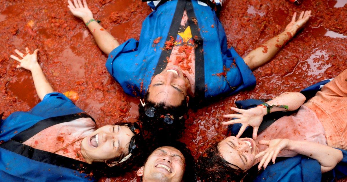 The festival which has no religious significance was first held in August 1945 following a fight among a group by throwing vegetables and fruits at each other.