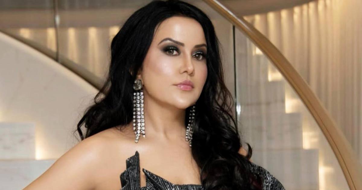 IMAGE: Amruta completed the look with diamond earrings and smokey eyes.