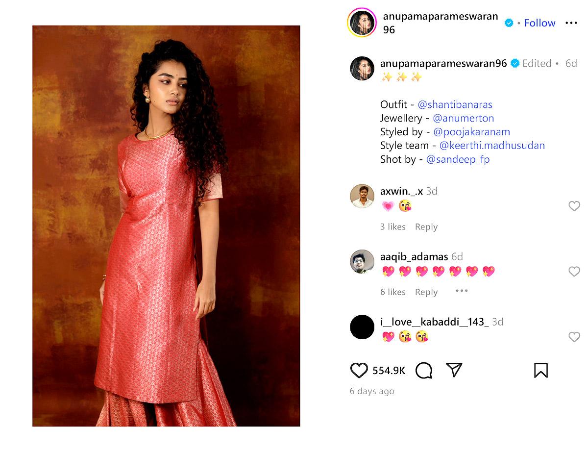 Anupama Parameswaran is lighting up the festive season with her stunning traditional looks.