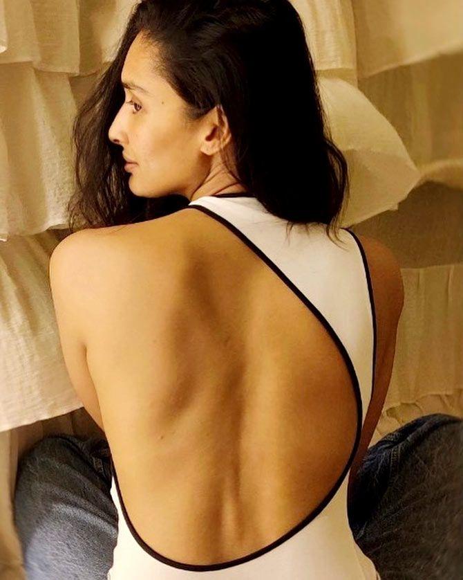 IMAGE: Reha Sukheja makes a case for the 90s beautiful back trend in black.