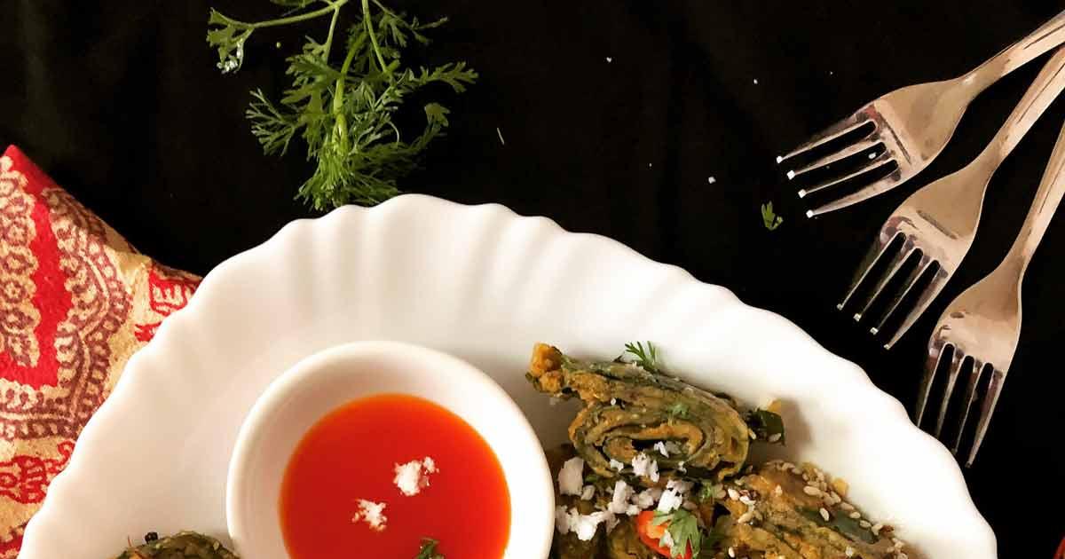 Traditionally, paatra is prepared using colocasia leaves. A thick paste of spiced gram flour is generously applied on the leaves, which are then rolled, steamed, sliced and shallow fried.