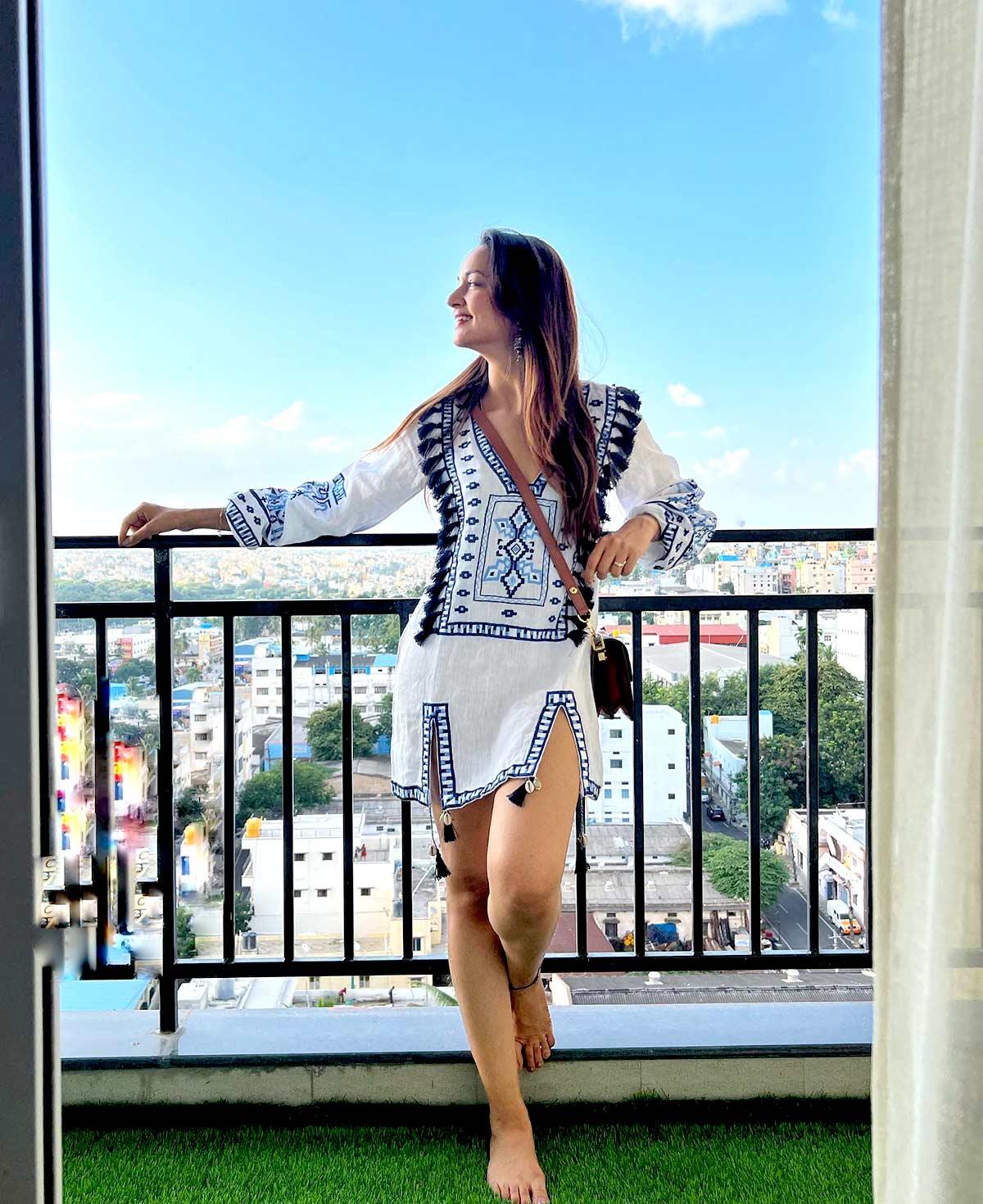 IMAGE: Shanvi makes the kurti look fun and vacay ready as she styles it as a short dress -- playful and flirty.