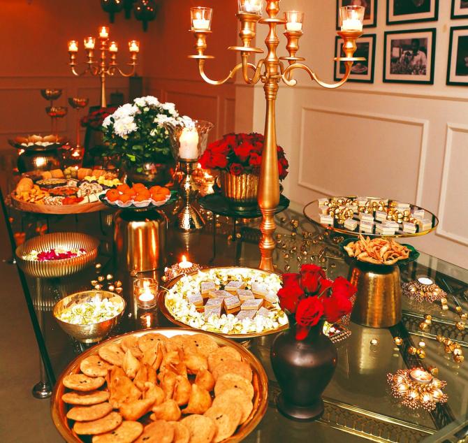 This year, she will host a mushaira and a Kathak performance at home. For home parties such as hers, Bhatia recommends setting up elaborate grazing tables with a mix of traditional sweets and savouries, arranged alongside heirloom silver and glassware.
