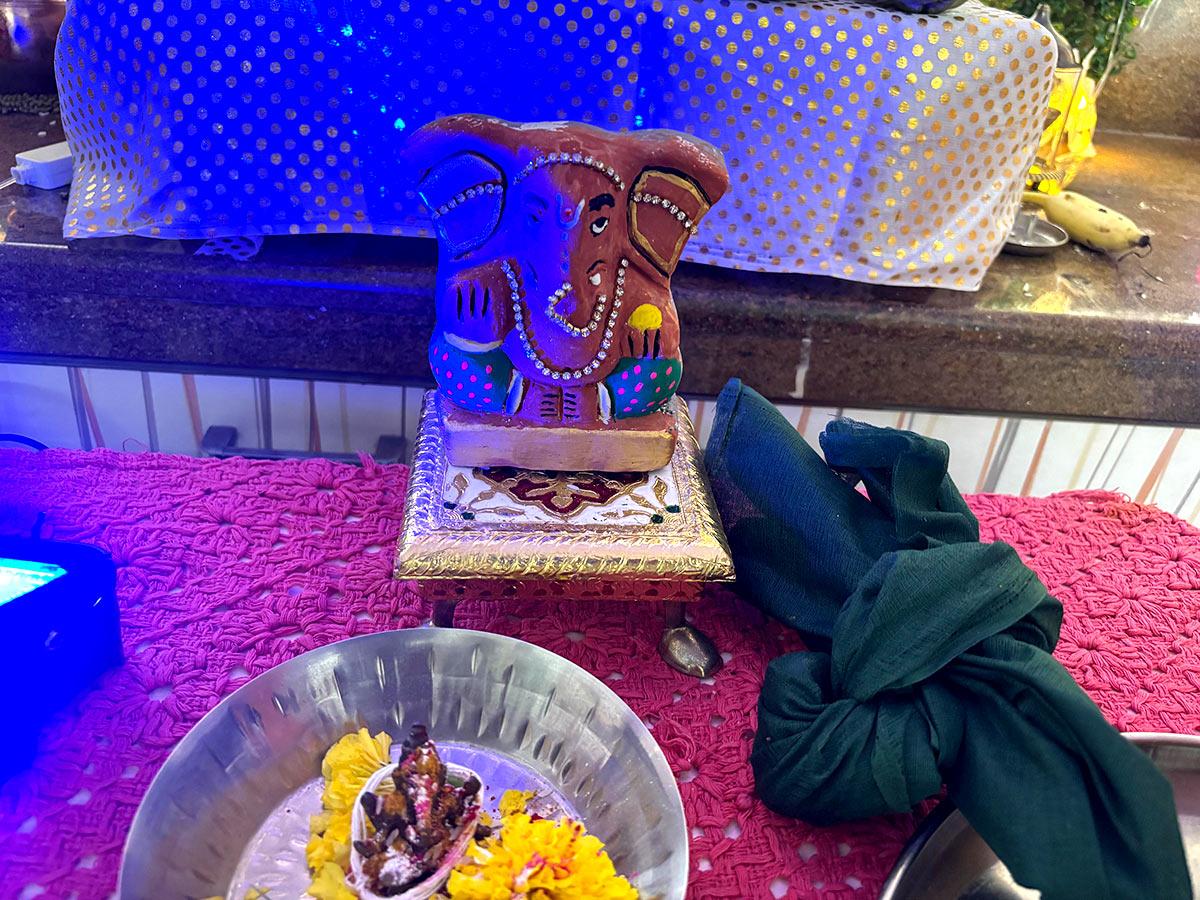 A beautiful home-made Lord Ganesha graces Dhyana's home.