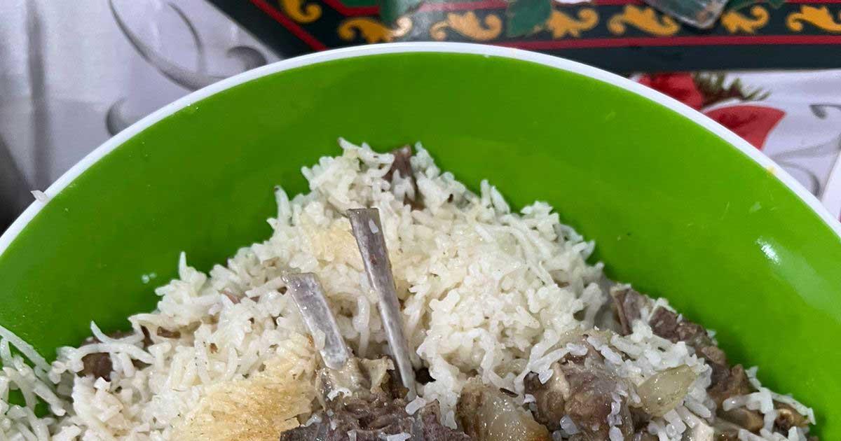 The mutton is put together separately and the rice is then cooked up in the leftover mutton stock or in Urdu yakhni. Later the mutton is added to the rice and it becomes a fragrant pulao.