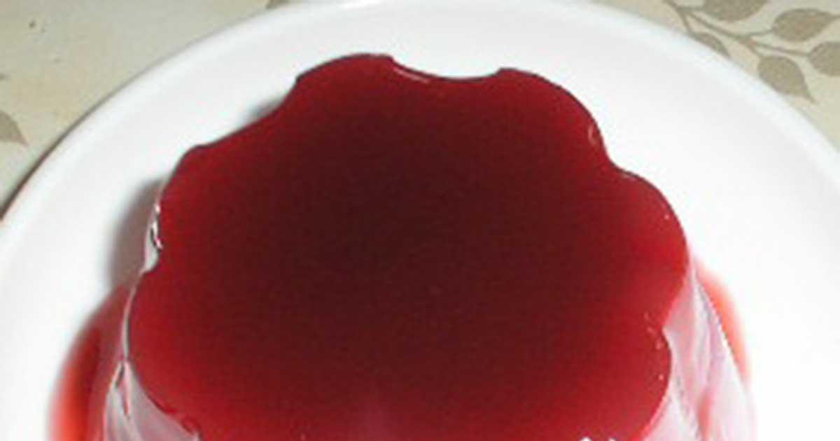 Add the cooled jelly liquid to the custard and mix well so you have a light pink pudding with jelly flecks.