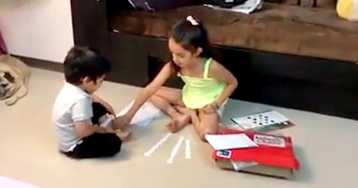 Rediff reader Amit Ahuja sent us this video of how he keeps his kids entertained during the lockdown.
