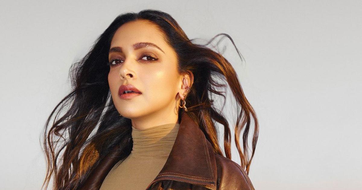 IMAGE: Deepika Padukone throws a chocolate brown leather jacket over a body-hugging neutral dress and the outfit suddenly says, ‘Don’t mess with me.’ Photograph: Kind courtesy Deepika Padukone/Instagram