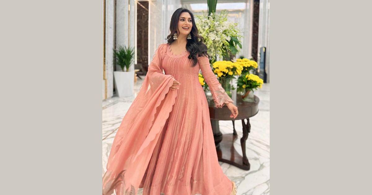 IMAGE: Divyanka jazzes up her peach anarkali with statement jhumkas.
