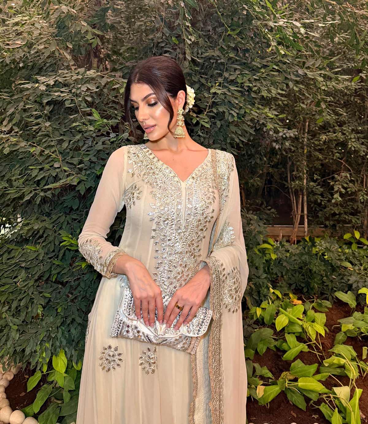 IMAGE: Who would’ve thought an Iranian beauty could embrace Indian flair this effortlessly? Elnaaz looks like a dream in an ivory salwar suit, complete with jhumkas and a gajra. All photographs: Kind courtesy Elnaaz Norouzi/Instagram