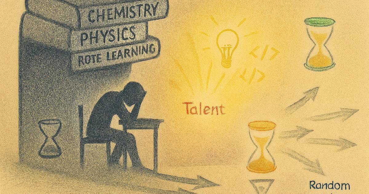 He highlights a fundamental flaw in the system: Aptitude and passion often take a backseat to the rote learning required for entrance tests.