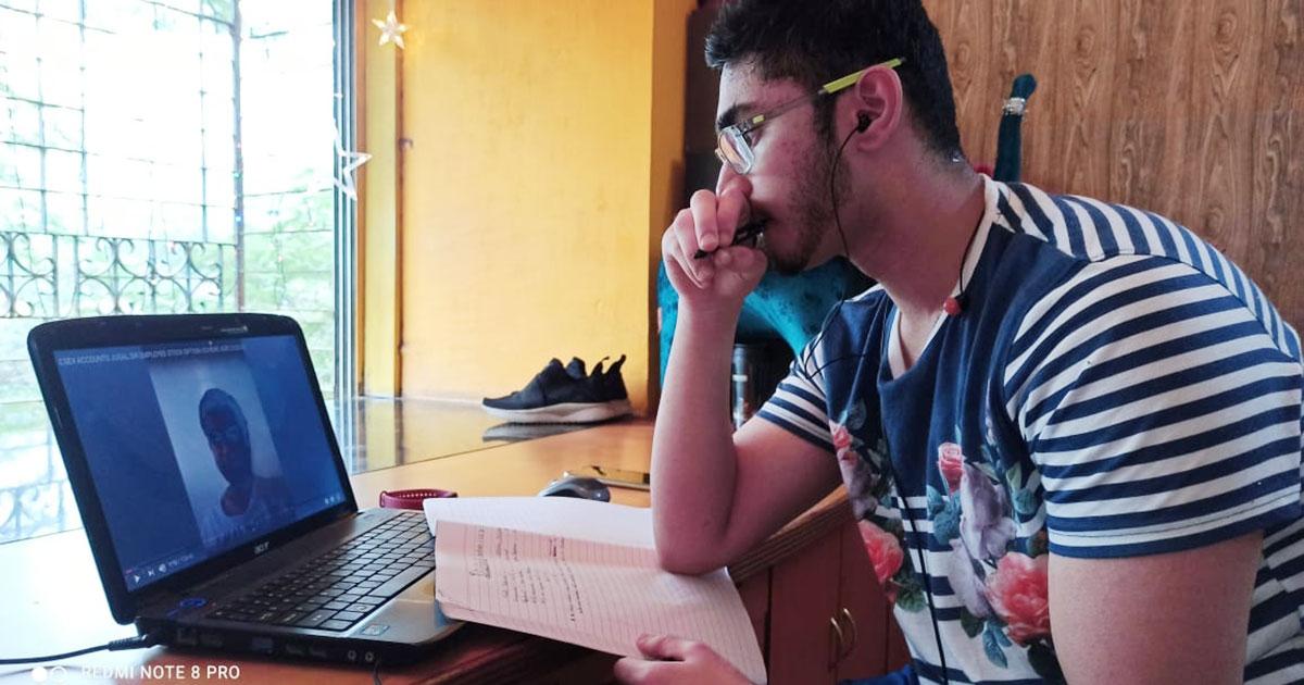 IMAGE: Anirudh Mahajani prepares for the CS executive level exams with the help of online classes. Photograph: Kind courtesy Nilesh Mahajani