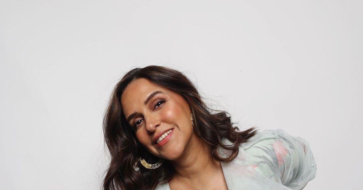IMAGE: Neha paired the floor-length gown with a white see-through jacket and metallic jewellery.