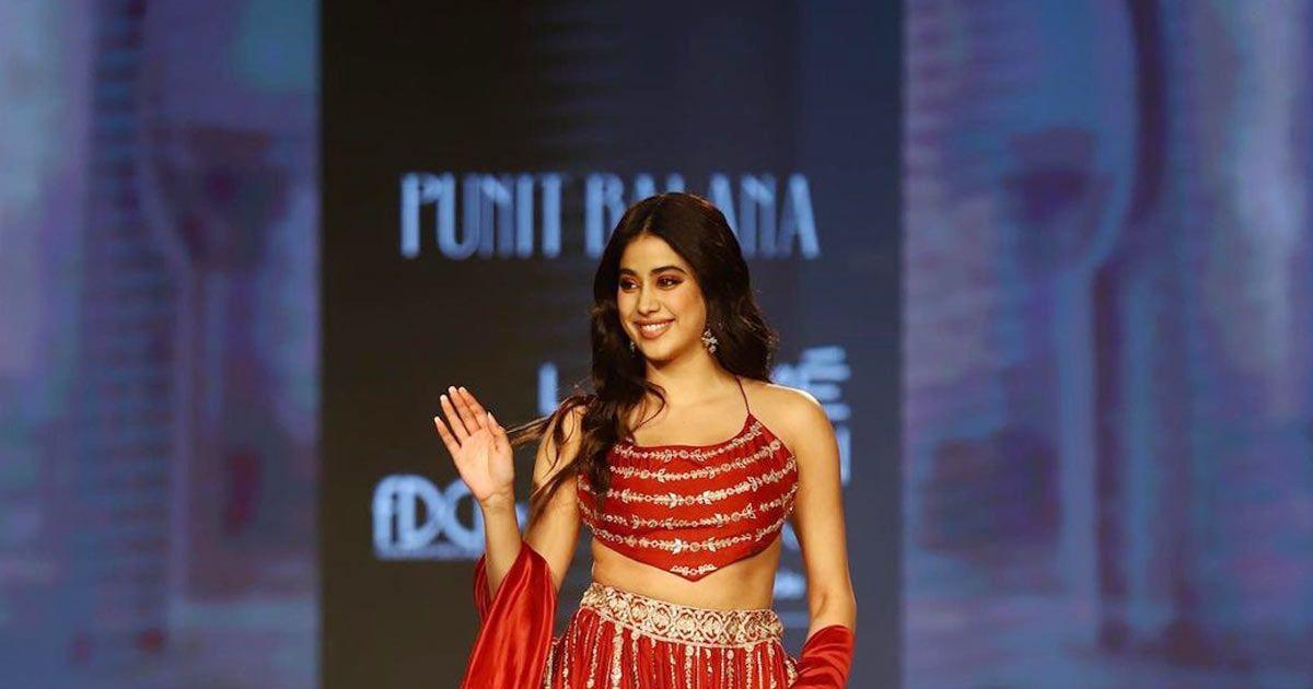 Janhvi Kapoor looked red hot as she sashayed down the ramp in a lehenga-choli for designer Punit Balana.