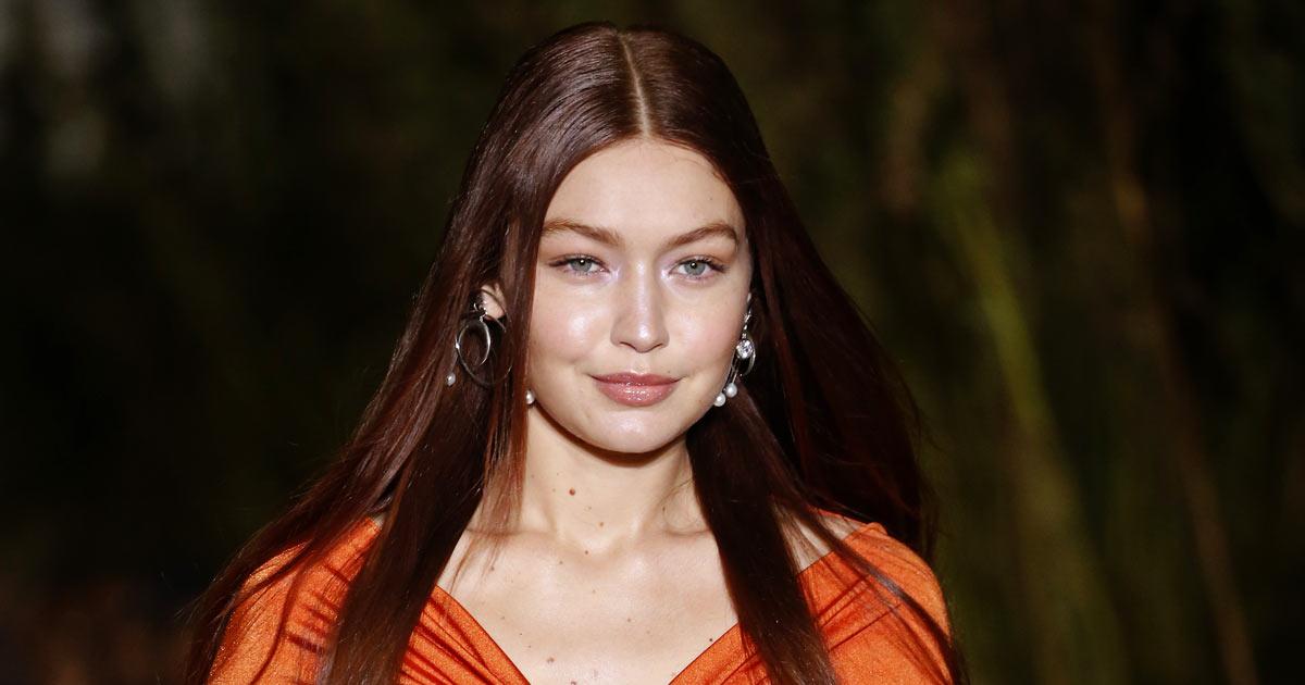 IMAGE: Gigi Hadid channels her inner diva as she walks the ramp in an orange cropped top with a shimmering sequin skirt.