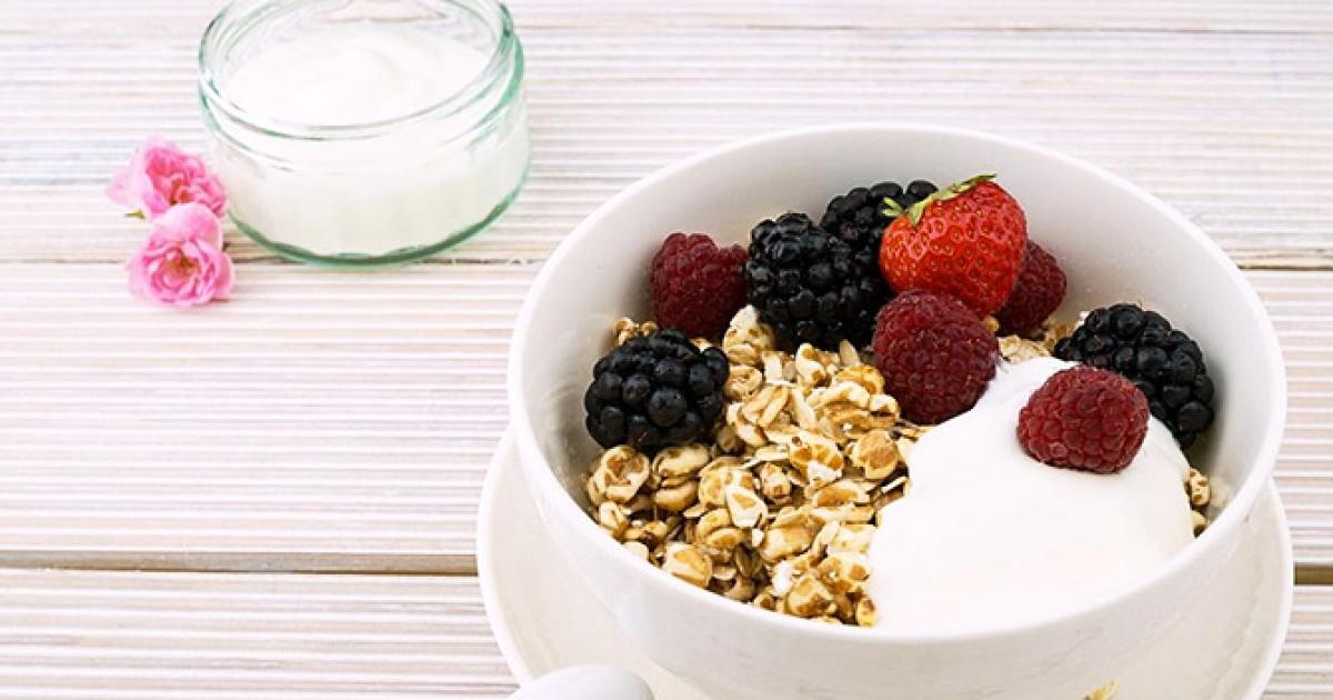 Fruity yogurt with cereal topping