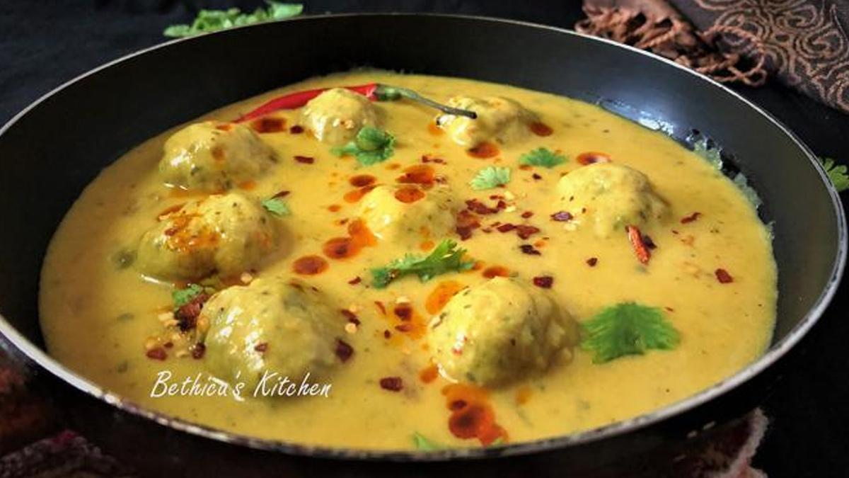 Bethica chooses to simmer spiced chicken balls in a tangy curd-and-besan gravy, tempered with mustard seeds and fenugreek and it turns out rather special. She suggests vegetarian or vegan variations using paneer or vegetables.