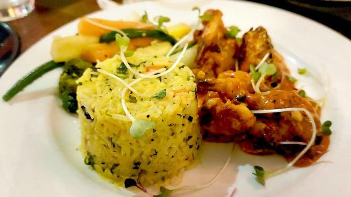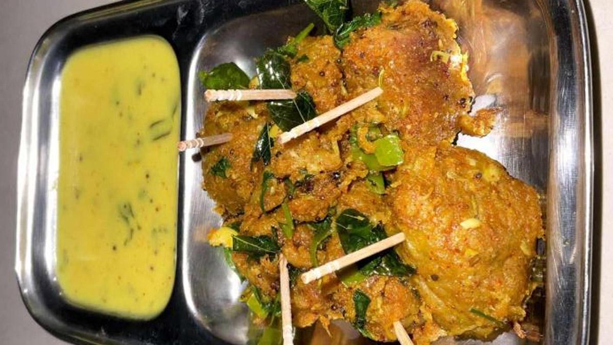 A yummy cross-regional creation by Sunita Harisinghani, she blends Mangalorean and Sindhi flavours and transforms the classic dahi kadhi into something new with the addition of crispy South Indian-style dal vadas made from chana dal and chopped onions.