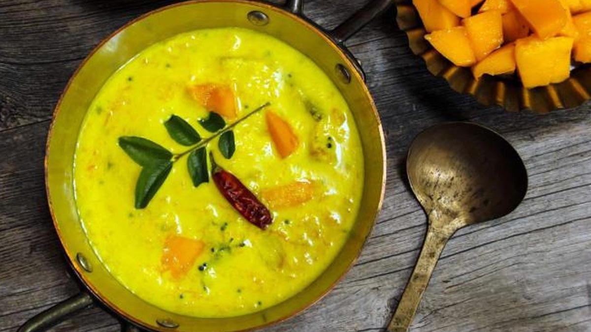 Head down south and they do delightful thinhs with dahi. Along the Malabar coast they blend in seasonal not too sweet mangoes and grated coconut. The dish goes handsomelly with plain rice and appalams. A 100 per cent traditional recipe from Manjula Nair.