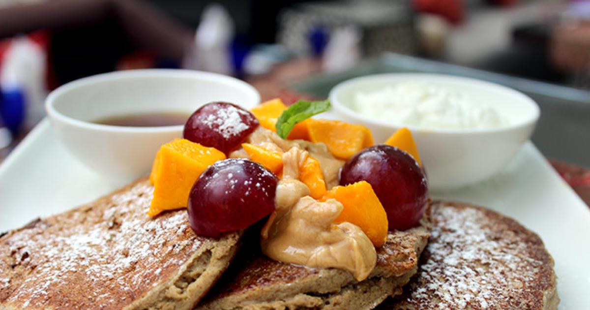 - Place all pancakes in a plate and top with peanut butter and fruits.