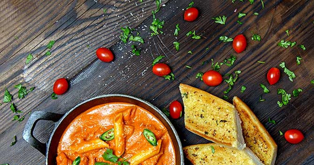 - Heat oil in a pan and add chopped garlic. Add green chillies and let brown well. For non-veg penne makhani, add diced raw chicken before the gravies are added and saute till done.