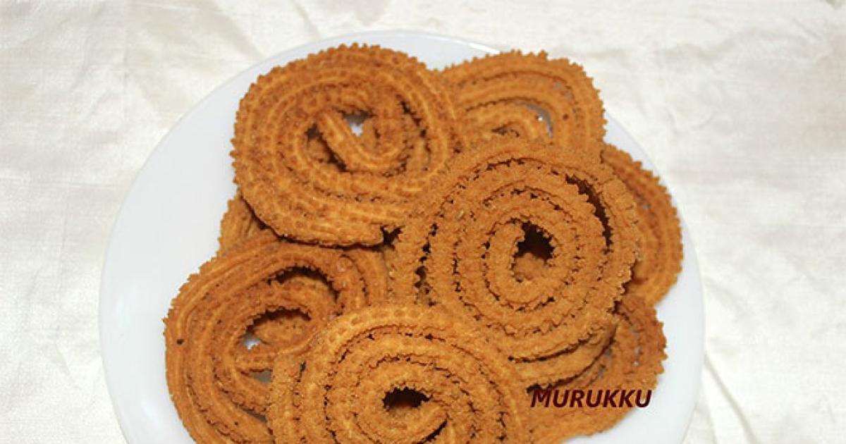 Murukku or Chakli is a popular South Indian snack made with rice flour, gram flour and seasoned with salt, asafoetida and either cumin seeds or white sesame seeds.