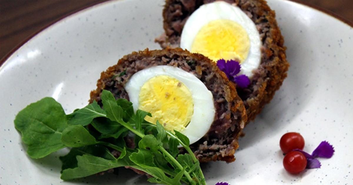 - Peel the eggs and keep them aside. Next, crack the remaining two raw eggs in a bowl with the milk and season with a little salt. Beat them together until everything is mixed well.