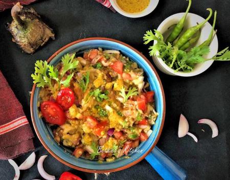 Bethica Das shows us how to make classic roasted eggplant or bharta in the Bihari way. This is how the dish is made in Bengal and Jharkhand too.