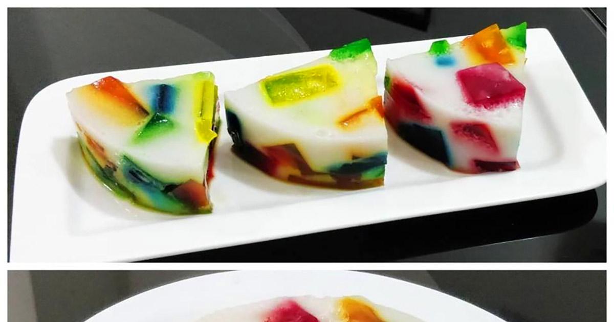 Repeat for the red and green-coloured jellies and refrigerate all three containers for 2-4 hours until the jellies sets.