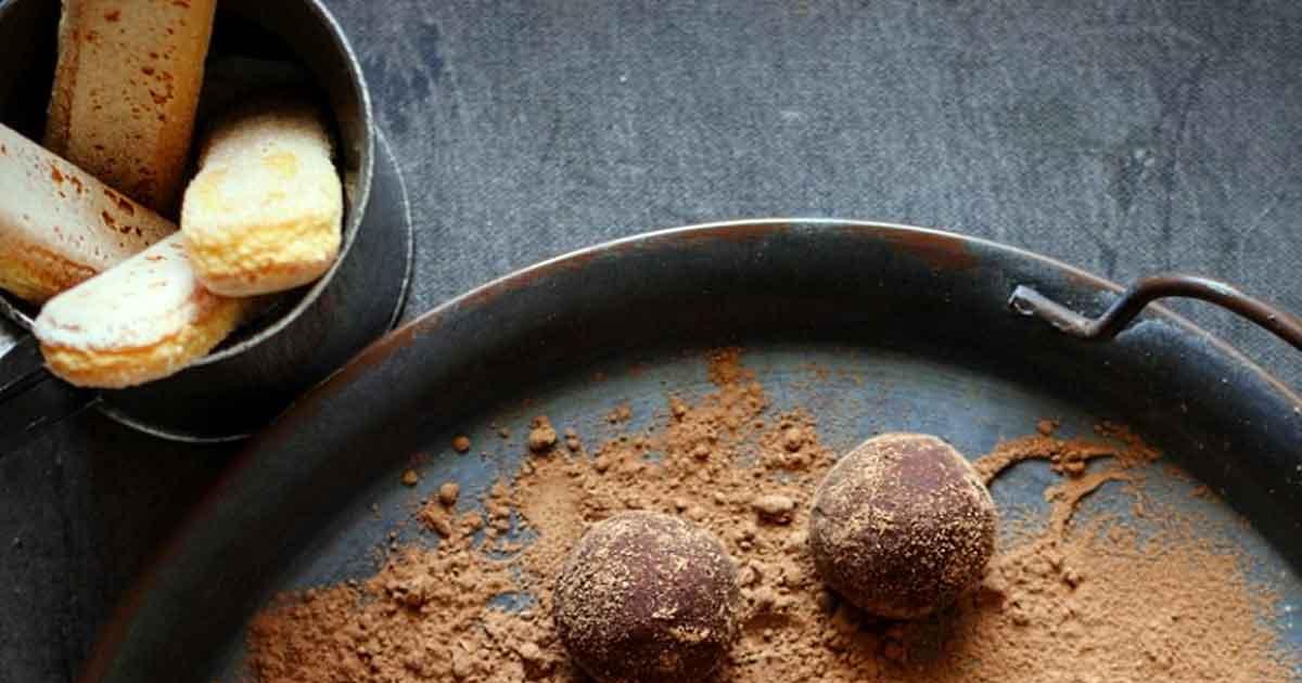 For vegan truffles substitute ladyfingers with Marie biscuits and mascarpone with homemade vegan mascarpone using this [external link] recipe.