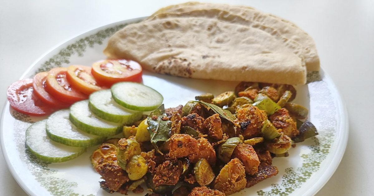 For a fancier version of Tindli Alu, you might want to separately deep fry the tindli and then add to the potatoes. Similarly for bhindi and baingan.